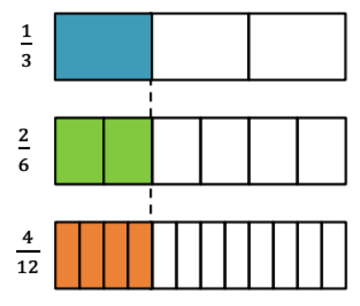 This pictorial diagram links equivalent fractions to equal areas, where a whole is presented visually with the same sized rectangle. The SAM Worksheets are written to foster connections between different ideas to deepen understanding, and ultimately enable students to make new connections of their own in the world of problem-solving.